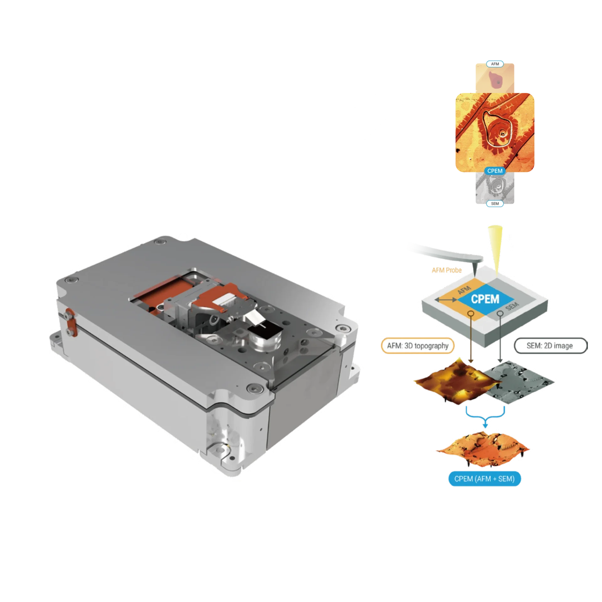 LiteScope ผสานรวมการสร้างภาพภูมิประเทศ 3D ด้วย AFM เข้ากับการถ่ายภาพ SEM ความเร็วสูงในแพลตฟอร์มเดียว ให้ข้อมูลโครงสร้างและองค์ประกอบในระดับนาโนได้ภายในไม่กี่นาที โดยไม่ต้องย้ายตัวอย่าง เหมาะอย่างยิ่งสำหรับการวิจัยวัสดุ การวิเคราะห์เซมิคอนดักเตอร์ และงานวิจัยและพัฒนาขั้นสูง