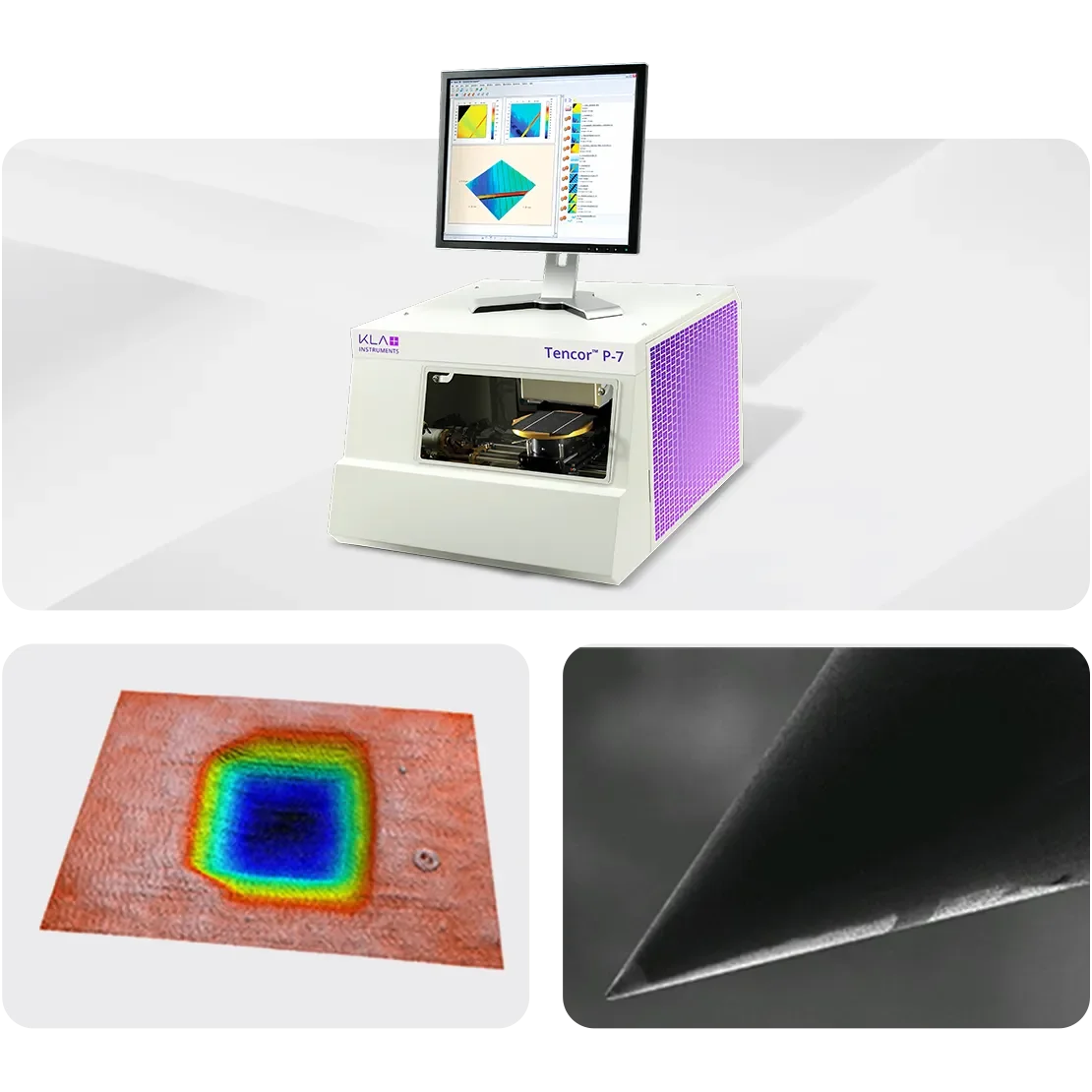นี่คือเครื่องวัดโปรไฟล์แบบ Stylus ที่สามารถวัดความสูงของพื้นผิวได้ตั้งแต่ระดับนาโนเมตรจนถึง 1 มิลลิเมตร รองรับการวัดทั้งแบบ 2D และ 3D สำหรับการตรวจสอบขั้นผิว ความหยาบ ความโค้ง และความเครียด โดยสามารถสแกนชิ้นงานขนาดใหญ่ถึง 150 มิลลิเมตรได้โดยไม่ต้องเย็บภาพ อุปกรณ์นี้ให้ประสิทธิภาพเทียบเท่าเครื่อง P-7 แต่มาในรูปแบบตั้งโต๊ะที่คุ้มค่า เหมาะทั้งสำหรับสายการผลิตและงานวิจัยพัฒนา ภาพที่เห็นแสดงให้เห็นตัวเครื่องและตัวอย่างการสแกนพื้นผิว 3D ที่แสดงผลด้วยสีสันชัดเจน
