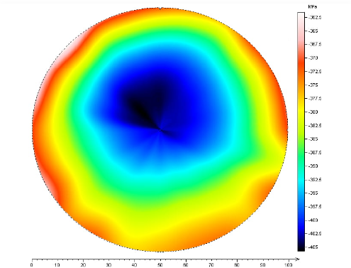 เครื่องวัดความสูงพื้นผิว Tencor P-7 สามารถวัดความเค้นที่เกิดขึ้นระหว่างการผลิตอุปกรณ์ที่มีชั้นกระบวนการหลายชั้น เช่น อุปกรณ์เซมิคอนดักเตอร์หรือสารประกอบเซมิคอนดักเตอร์ ความโค้งของพื้นผิวจะถูกวัดอย่างแม่นยำโดยใช้หัวจับความเค้นเพื่อรองรับตัวอย่างในตำแหน่งที่เป็นกลาง การเปลี่ยนแปลงรูปร่างจากกระบวนการ เช่น การสะสมฟิล์ม จะถูกใช้เพื่อคำนวณความเค้นโดยใช้สมการของ Stoney ความเค้น 2D จะถูกวัดด้วยการสแกนเดี่ยวผ่านเส้นผ่านศูนย์กลางตัวอย่างสำหรับตัวอย่างขนาดสูงสุด 200 มม. โดยไม่จำเป็นต้องเย็บภาพ ความเค้น 3D จะถูกวัดโดยใช้การสแกน 2D ร่วมกัน โดยที่แท่น theta จะหมุนระหว่างการสแกนเพื่อวัดพื้นผิวตัวอย่างทั้งหมด